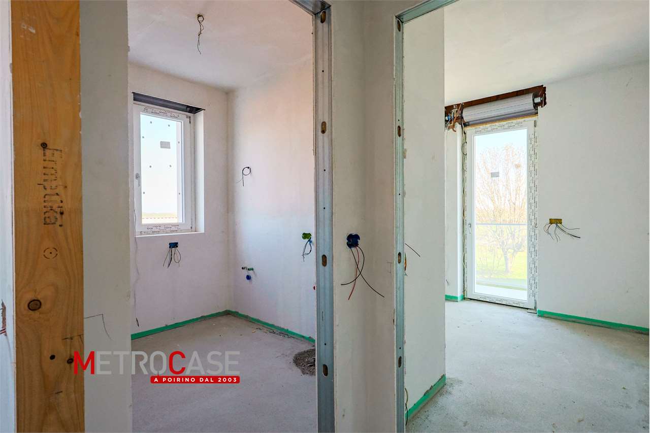 Vivere nel verde, con il comfort di una casa nuova Cosa vuoi dalla tua prossima casa? Tranquillità, comfort e pace? Oppure funzionalità e risparmio sui costi di gestione? Metrocase Poirino è felice di farti una proposta che accontenta entrambe le esigenze! Un alloggio di nuova costruzione situato al primo piano servito da ascensore, situato in un contesto verde e tranquillo, ma comodo alla città e ai servizi. Siamo in una frazione di campagna collocata sulla strada tra Poirino e Carmagnola, una posizione strategica per chi ama la natura e desidera allontanarsi dal caos cittadino, ma senza rinunciare alla comodità dei collegamenti, anche verso Villastellone e Santena. Qui ha preso vita un progetto unico: uno stabile anni Settanta è stato completamente ripensato e trasformato attraverso una ristrutturazione radicale, che ha dato origine ad un piccolo complesso residenziale composto da soli 5 appartamenti, pensati per garantire qualità della vita, privacy e funzionalità. L’alloggio che ti proponiamo ha un layout moderno, che ti permette di vivere la casa in modo pratico e funzionale. Spazi giusti e ben studiati, facili da vivere. Ingresso su soggiorno con cucina a vista, disimpegno, camera da letto matrimoniale con cabina armadi, camera ragazzi, bagno e bel balcone affacciato sul retro dello stabile, sul verde dei campi. Sono disponibili per l’acquisto, con costo a parte, posti auto coperti, scoperti e garage. Ogni alloggio è stato progettato con particolare attenzione al contenimento dei consumi: materiali di ultima generazione, impianti moderni e soluzioni tecniche permettono di ridurre i costi energetici e migliorare il benessere abitativo in ogni stagione. L’impianto di riscaldamento, a radianti a pavimento, è centralizzato con unica pompa di calore. In ogni unità abitativa sarà installato un contatore di energia termica, un contalitri per acqua calda sanitaria e un contalitri per acqua fredda sanitaria. L’alloggio al momento è al grezzo, verrà consegnato finito come da capitolato costruttivo, con possibilità di scelta dei materiali, per una personalizzazione che ti farà sentire subito a casa, accolto e coccolato! Classe energetica prevista A2, comunque non inferiore alla classe A.
