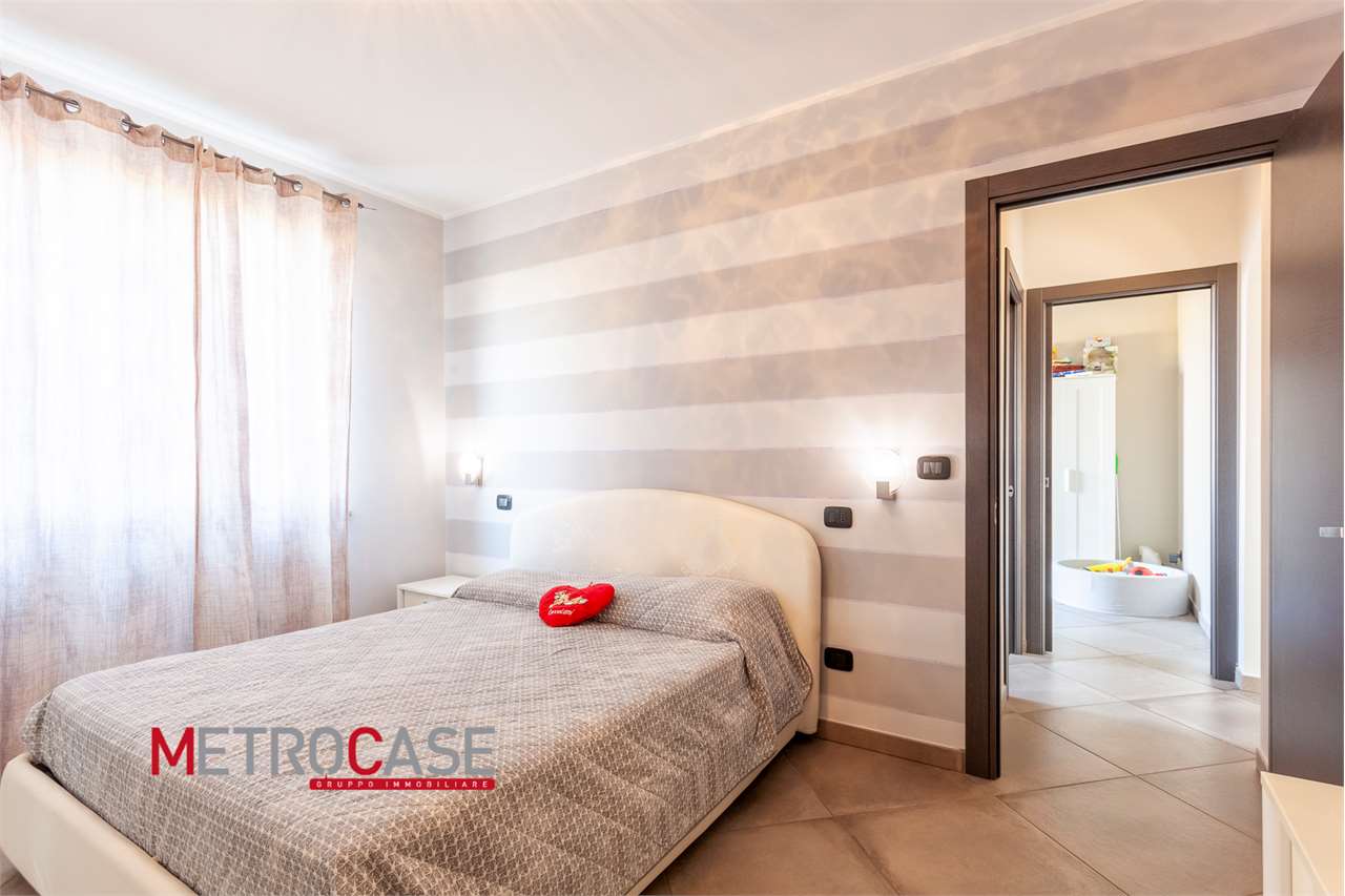 Al piano rialzato troviamo un moderno soggiorno con cucina a vista, ideale per le serate in famiglia, una camera matrimoniale, una cameretta pronta ad accogliere i sorrisi dei più piccoli e un bagno moderno e funzionale. La zona notte è dotata di balcone, mentre la zona giorno si apre su un bel terrazzo coperto, dotato di tenda parasole, cornice perfetta per trascorrere momenti di relax e piacevoli pranzetti.