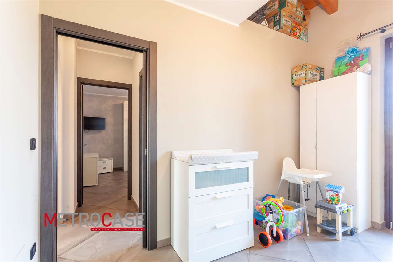 In posizione strategica, ma tranquilla e circondata dal verde, comoda al casello della tangenziale per Torino, ti presentiamo un alloggio unico, capace di unire modernità, comfort e un’atmosfera calda e familiare.